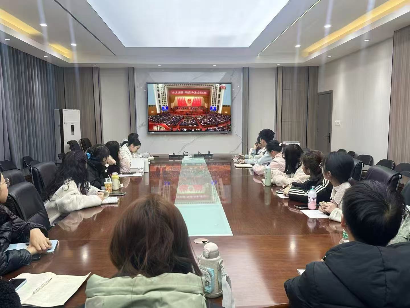 3月4日至5日,2025年“全国两会”顺利开幕,学校“苏区红”大学生宣讲团在博爱楼201室集中观看开幕式。
